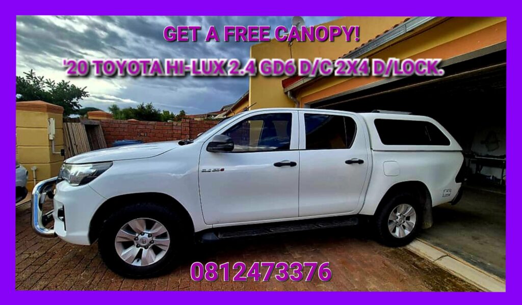 THERE IS ONLY ONE BRAND WHEN IT COMES TO BAKKIES IN 🇳🇦NAMIBIA🇳🇦, A BRAND THAT HAVE STOOD THE TEST OF ⏰️TIMES⏰️, A BRAND WITH IT’S NO NONSENSE GO ANYWHERE, GO FOREVER ATTITUDE. YES!! YOU HAVE GUESSED IT RIGHT!! TOYOTA!! 💥GET A FREE CANOPY💥 WHEN YOU PURCHASE THIS NEAT, ACCIDENT FREE, FULLY SERVICED 🇯🇵2020 TOYOTA HILUX 2.4 GD6 DOUBLE CAB 2X4, 6 SPEED MANUAL WITH DIFFLOCK🇯🇵. COMES WITH A CHROME NUDGEBAR, TINTED WINDOWS, RUNNING BOARDS, LOCKNUTS AND RUBERISED BAK. STANDARD FEATURES: POWERSTEERING, AIRCONDITIONING, BLUETOOTH, MP3, AUX/SD/USB SOUND SYSTEM, ELECTRIC WINDOWS AND -MIRRORS, REMOTE CENTRAL LOCKING, FULL SERVICE HISTORY (AGENTS) WITH ±134 000 KM. SELLING FOR ONLY: